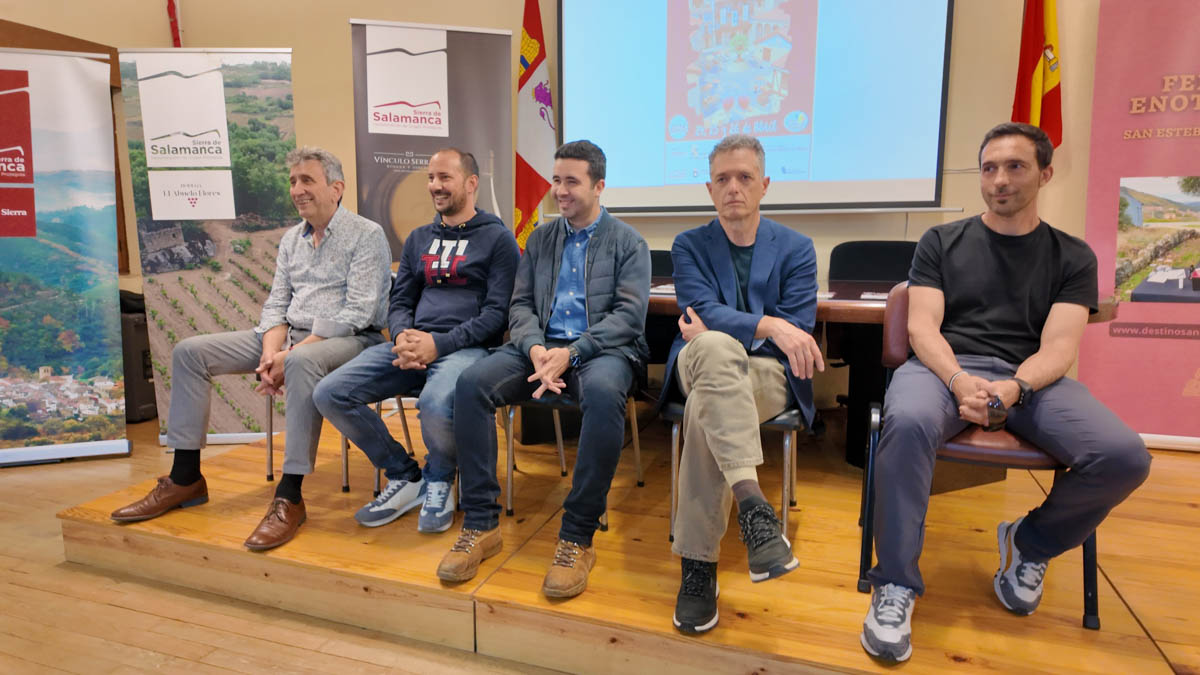 Al finalizar el acto, los asistentes han podido conocer de la mano de los propietarios, los orígenes de las bodegas y proyectos vinculados a San Esteban de la Sierra. En concreto, los responsables de la ponencia han sido Agustín Labrador, de Dominio de la Sierra; Juan Pérez Mateos, de Abuelo Flores; Pedro Martín, de Vínculo Serrano; Jesús Losa, de Las Pamelas; y Raúl Díez, de Veuño del Pareó.