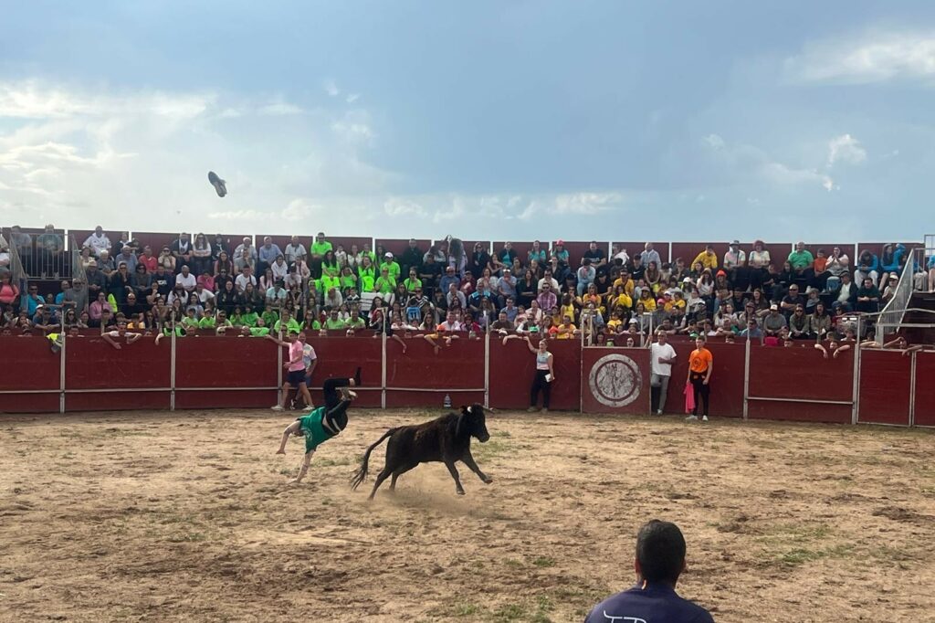 A continuación, los más atrevidos se han lanzado a la arena para dar sus pases y cortes a las vacas, animados por los aplausos y los gritos de aliento de los numerosos aficionados reunidos en la plaza. A pesar de algún susto y algún revolcón, el festejo ha concluido con normalidad.