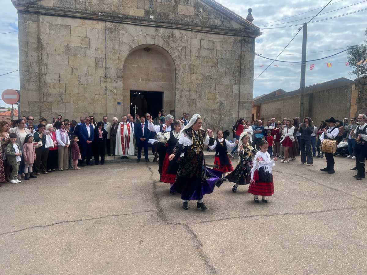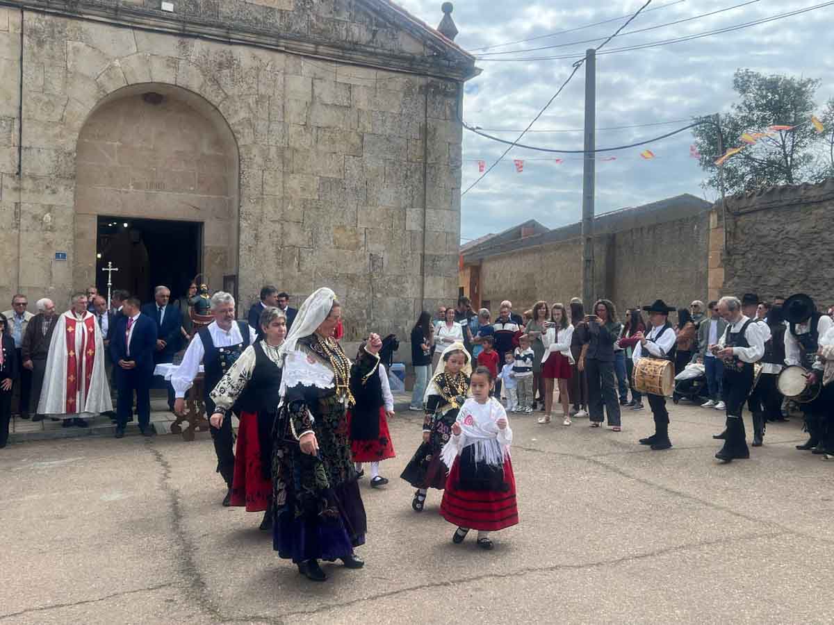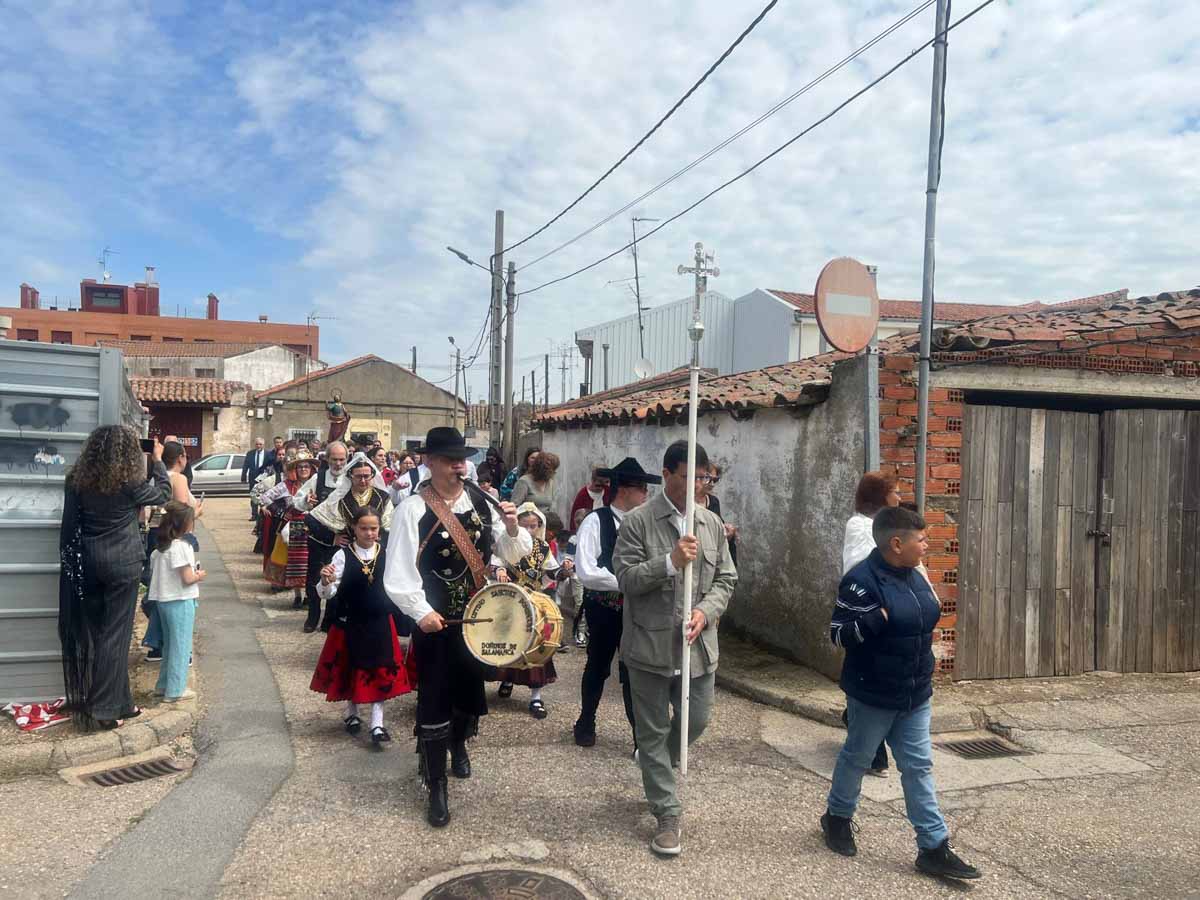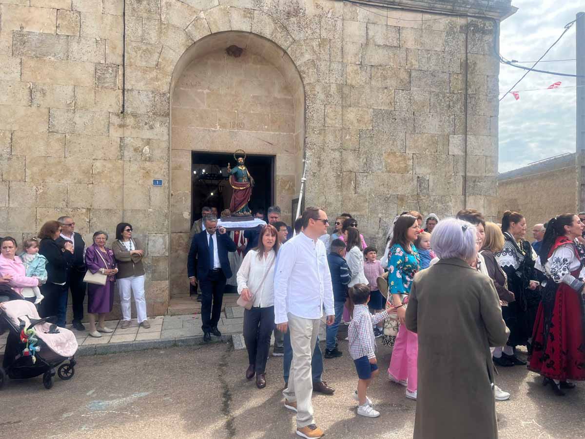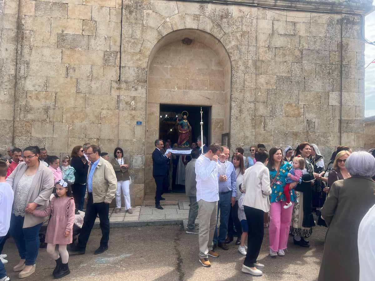 Las celebraciones religiosas han centrado la mañana del día grande de las Fiestas de San Marcos de Doñinos. Los vecinos han llenado la iglesia para participar en la misa castellana y a continuación, han sacado al Santo en procesión por el centro del municipio.