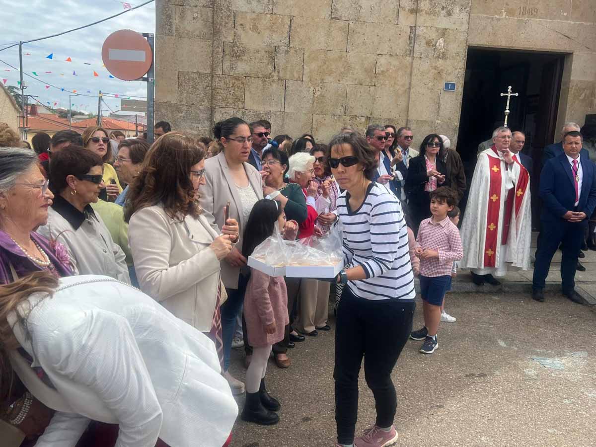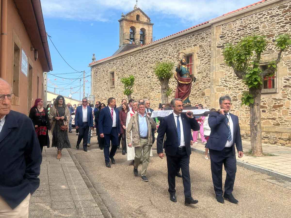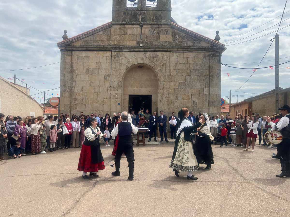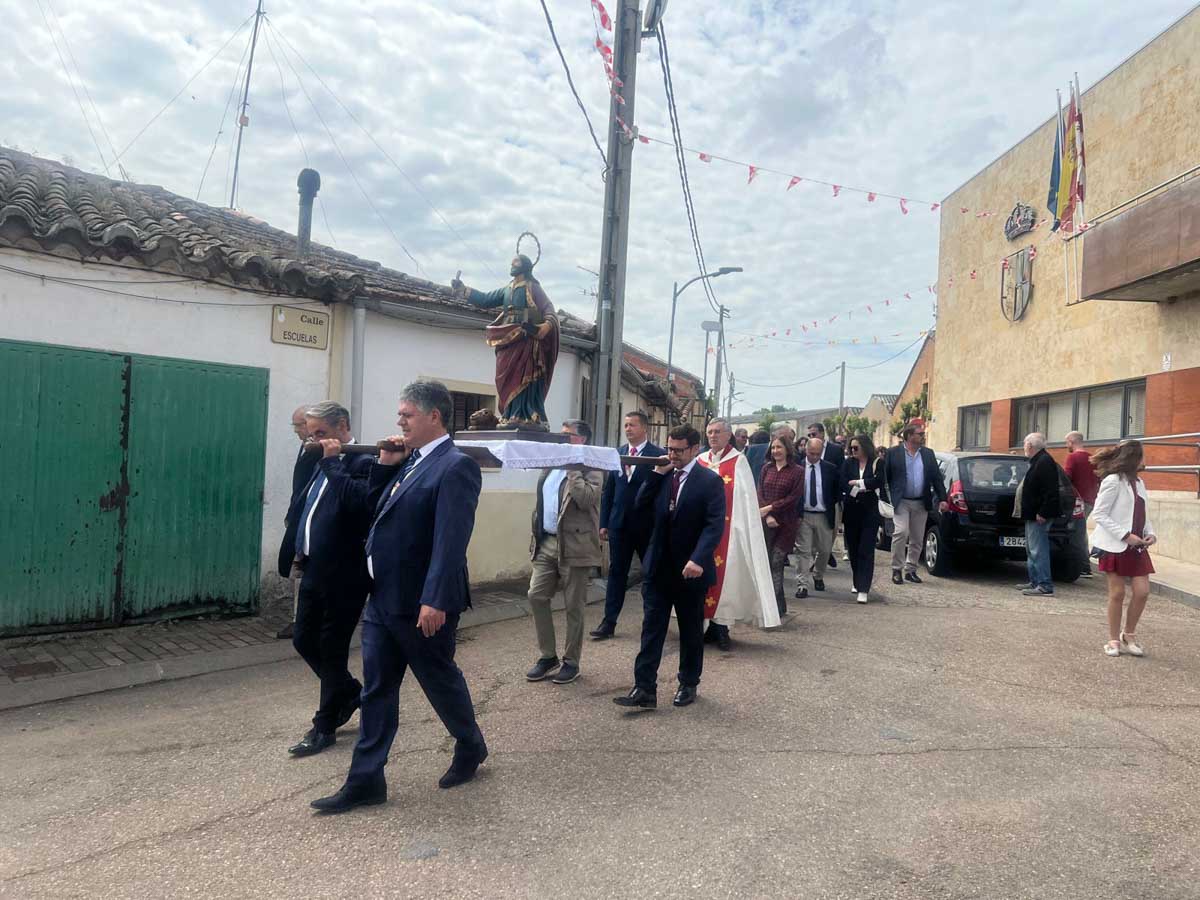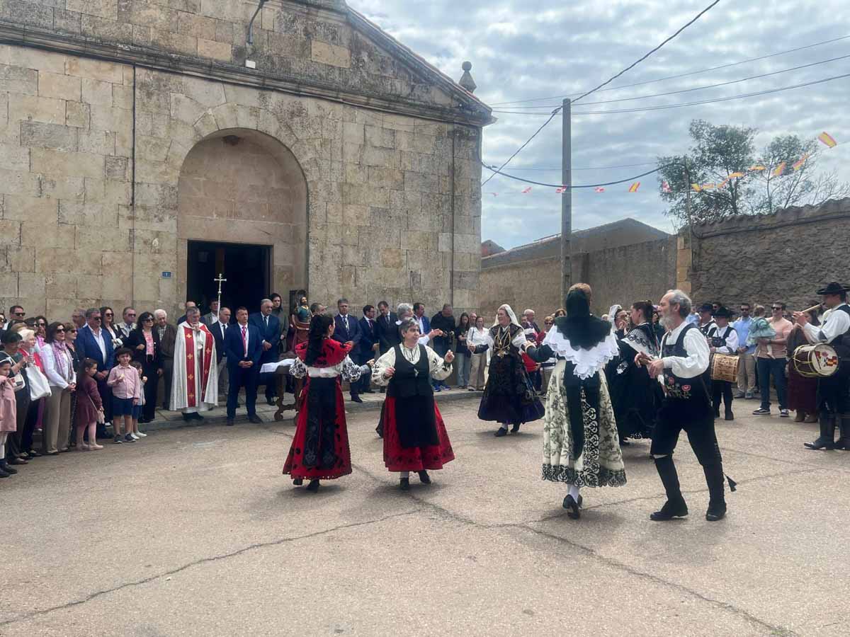 Las celebraciones religiosas han centrado la mañana del día grande de las Fiestas de San Marcos de Doñinos. Los vecinos han llenado la iglesia para participar en la misa castellana y a continuación, han sacado al Santo en procesión por el centro del municipio.