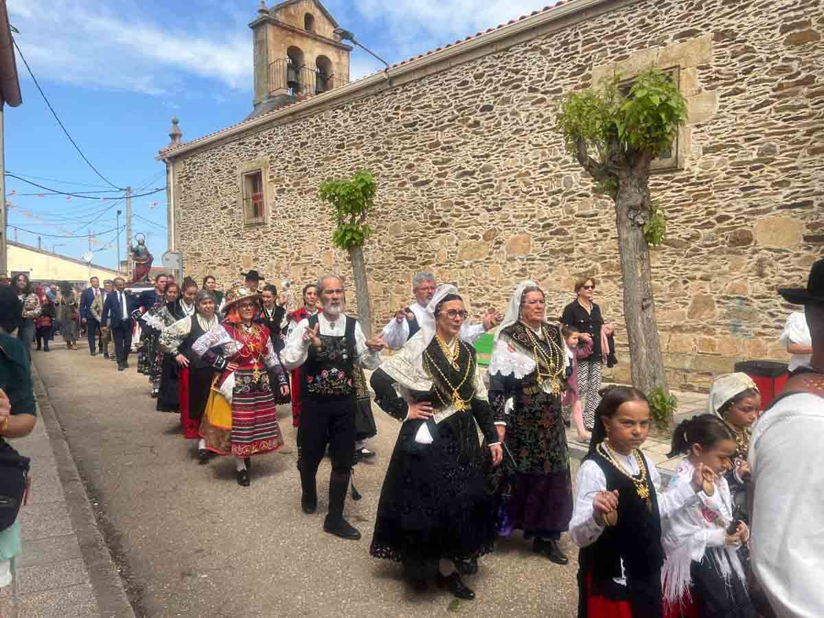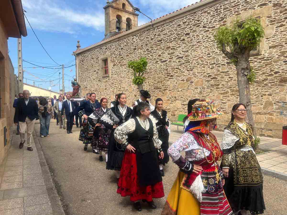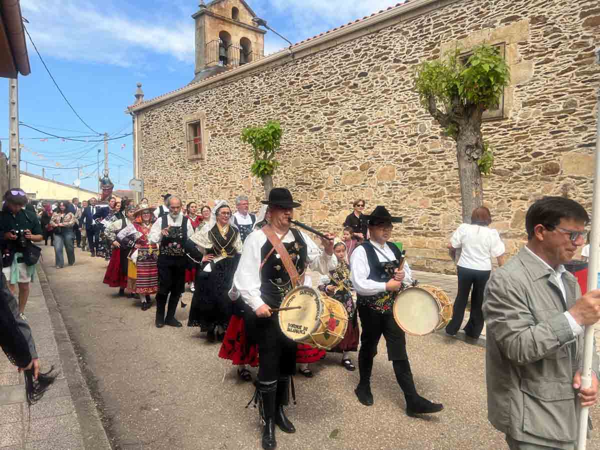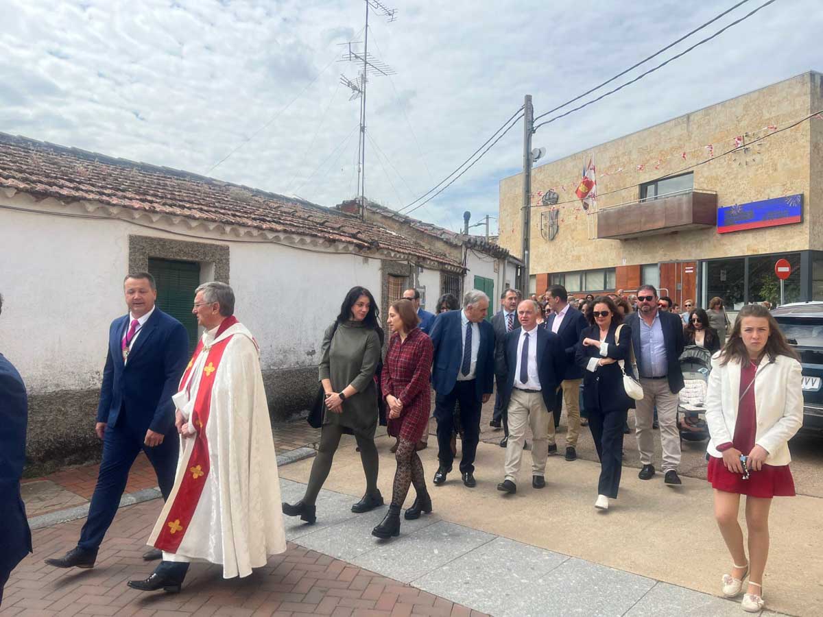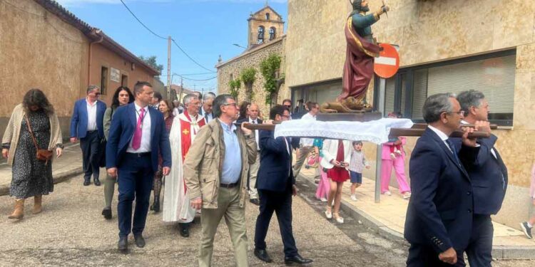 Las celebraciones religiosas han centrado la mañana del día grande de las Fiestas de San Marcos de Doñinos. Los vecinos han llenado la iglesia para participar en la misa castellana y a continuación, han sacado al Santo en procesión por el centro del municipio.