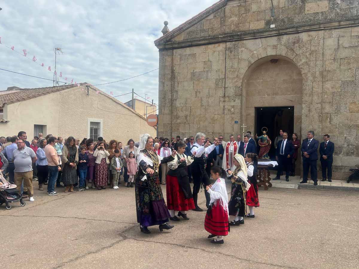 De regreso a la lpaza de la iglesia y antes de adentrar de nuevo al patrón al templo, han tenido lugar los tradicionales bailes charros que el Grupo Folclórico San Marcos ha dedicado en su honor.