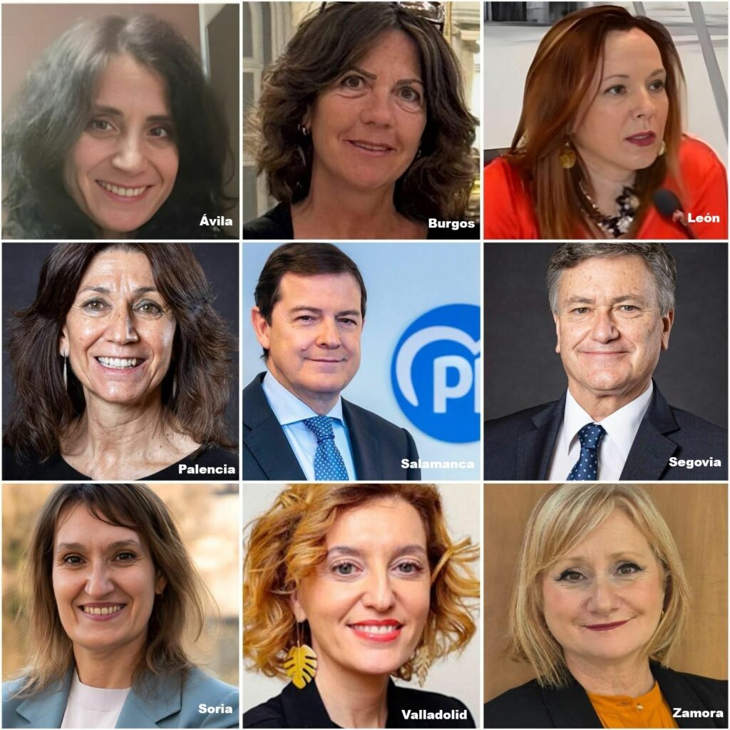 Los candidatos elegidos son: Cristina Sanchidrián (Ávila); Marta Arroyo (Burgos); María José Álvarez (León); María de las Mercedes Cófredes (Palencia=; Alfonso Fernández Mañueco (Salamanca); Francisco Vázquez (Segovia); Rocío Lucas (Soria); María Pardo (Valladolid); y Leticia García (Zamora).