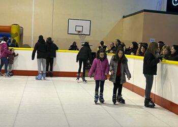 La pista de patinaje sobre hielo instalada en el frontón del parque ha sido esta tarde el principal atractivo para ...