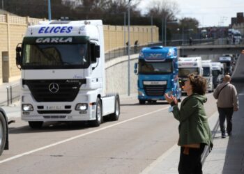 Los transportistas salmantinos colapsan las calles de la ciudad para protestar contra Sánchez por el precio del combustible