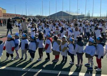 El Recinto Ferial de Carbajosa se ha teñido de blanco con los 689 escolares y los 54 profesores de los ...