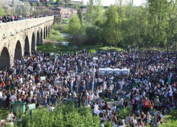 Los universitarios y los más jóvenes ‘toman’ el Puente Romano para la celebración del Lunes de Aguas